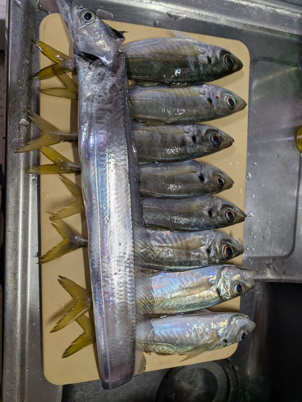 潮止まりのタイミングで太刀魚が釣れました、前回の釣行で何者かに切られたので正体判明です!