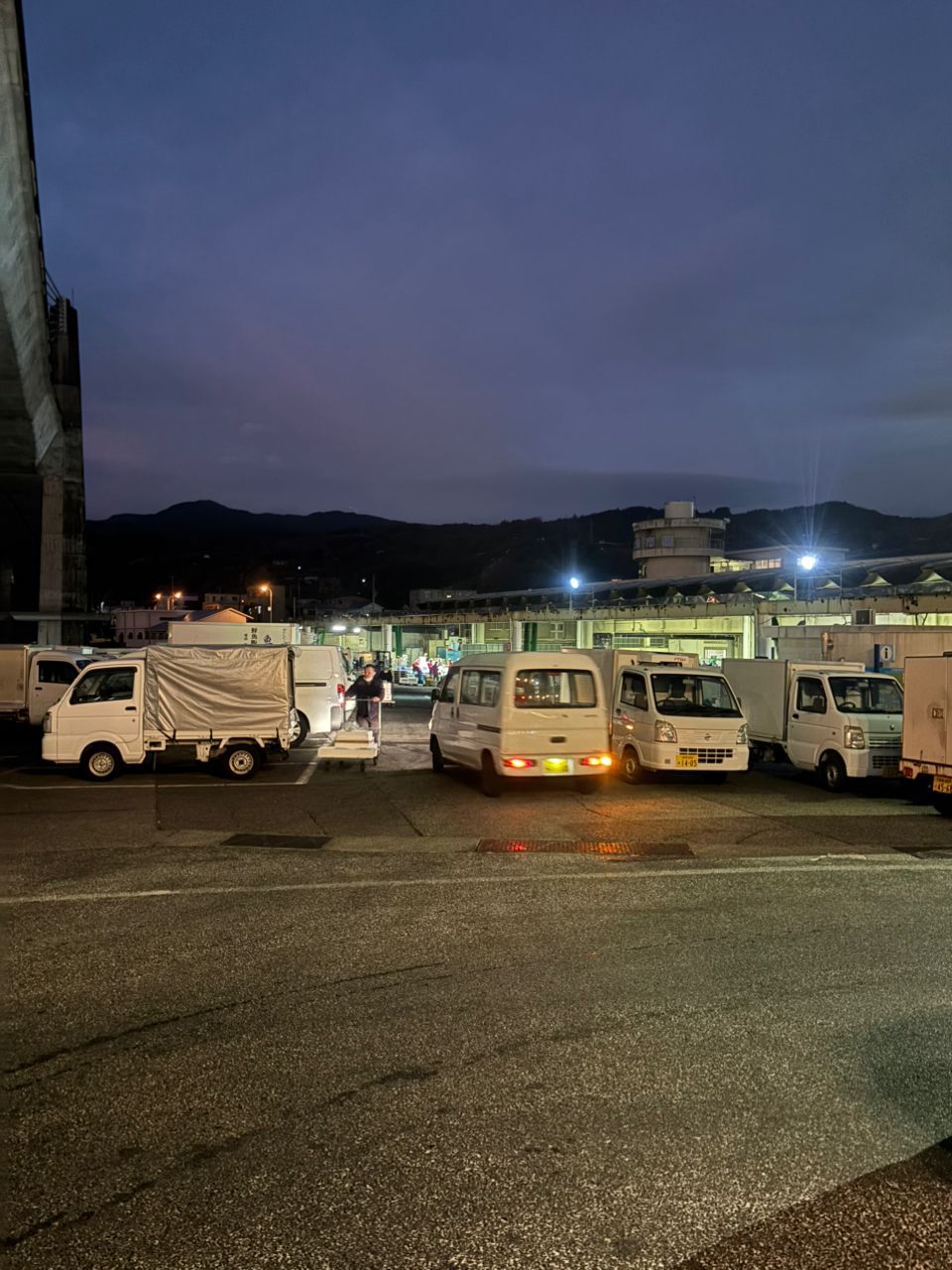 3枚目 寝て起きたら車一杯🚙活気のある港でした♪