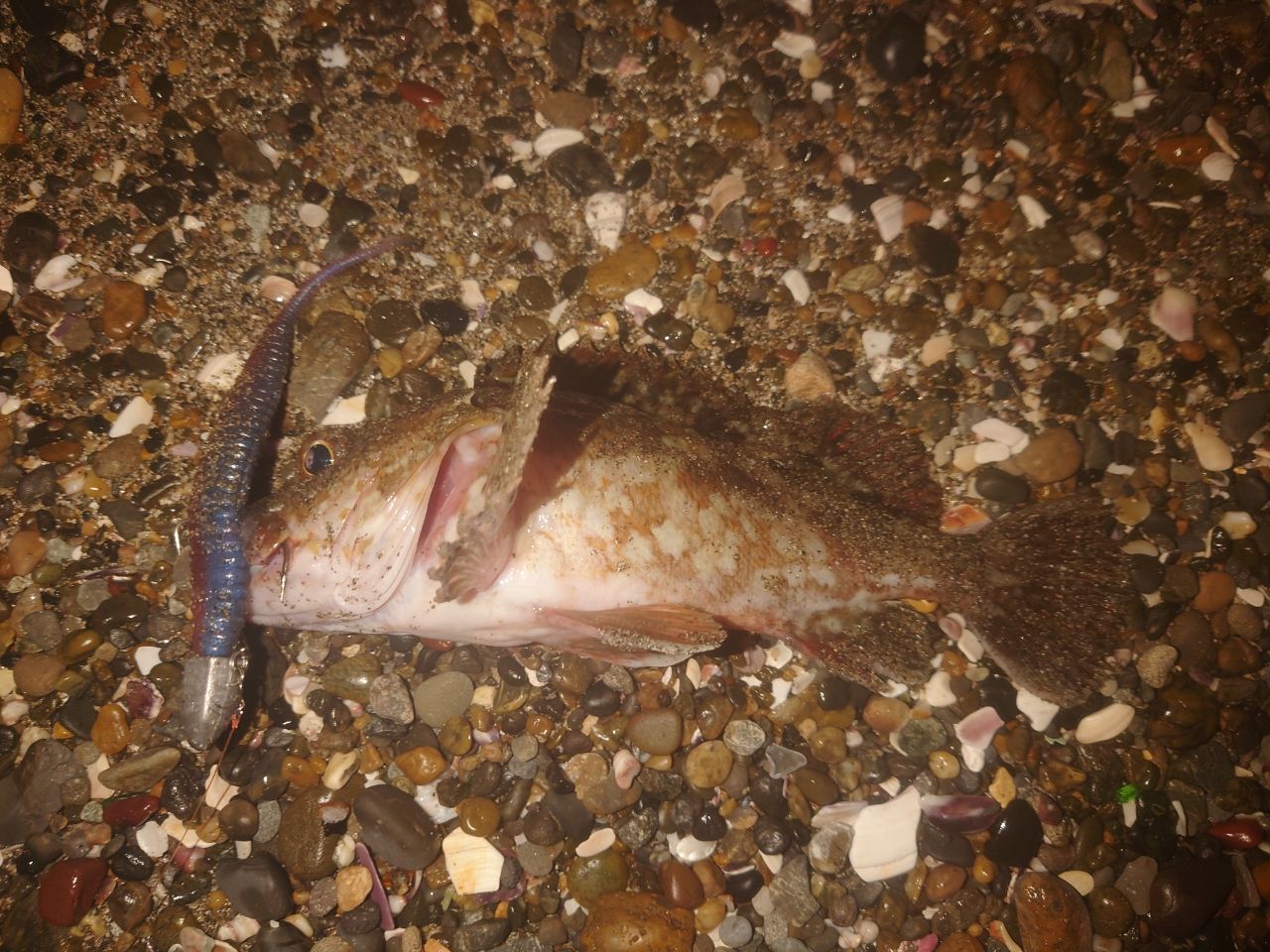 ジグ単デスアダー6インチ(15cm)に着底でカサゴwww