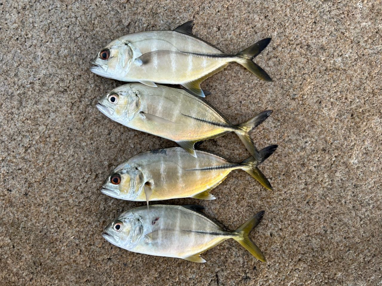 夕まずめにメッキの活性が高く、ナブラ打ちで1匹、ボトムからのワンピッチジャークで3匹釣れました😆