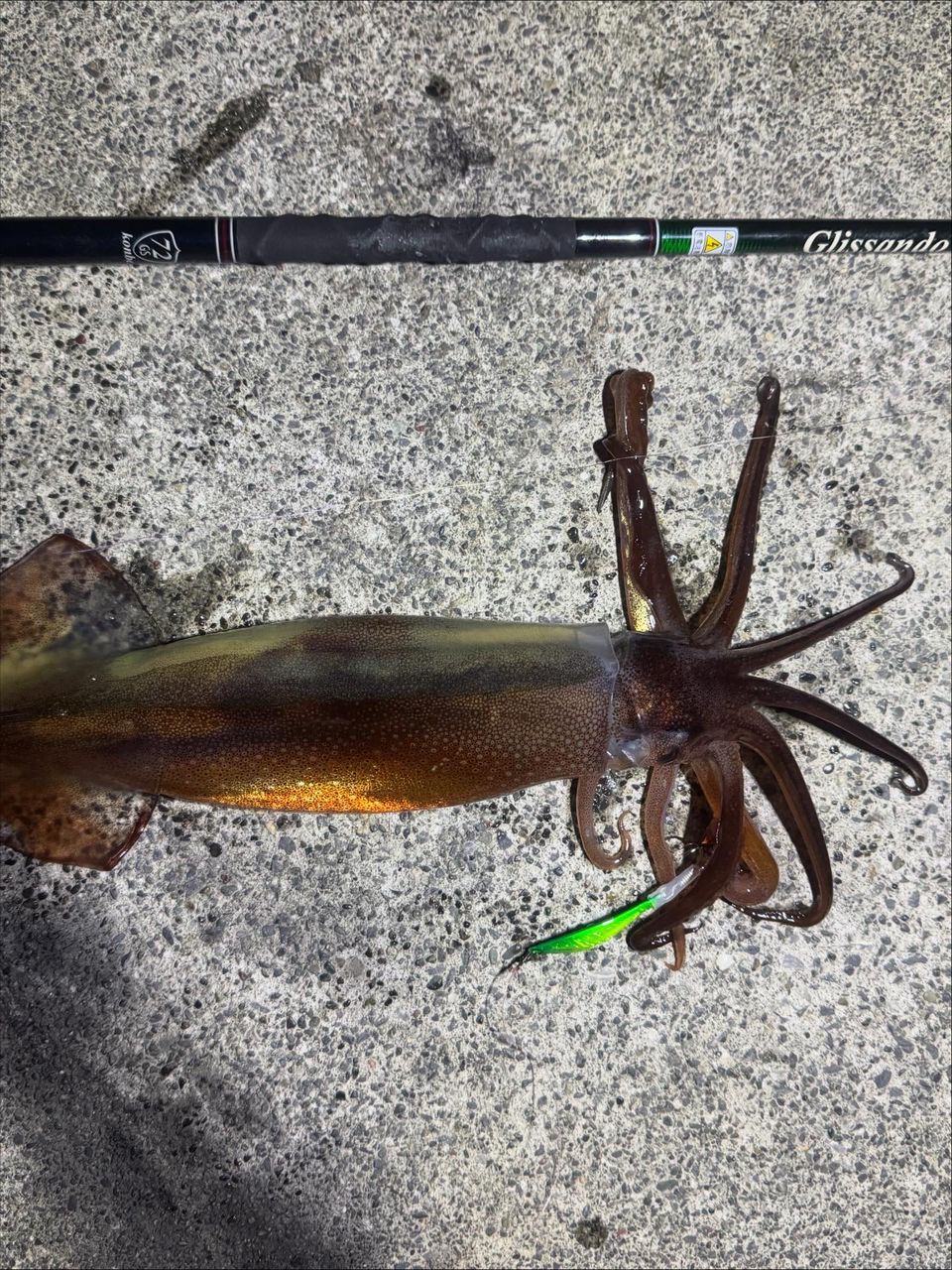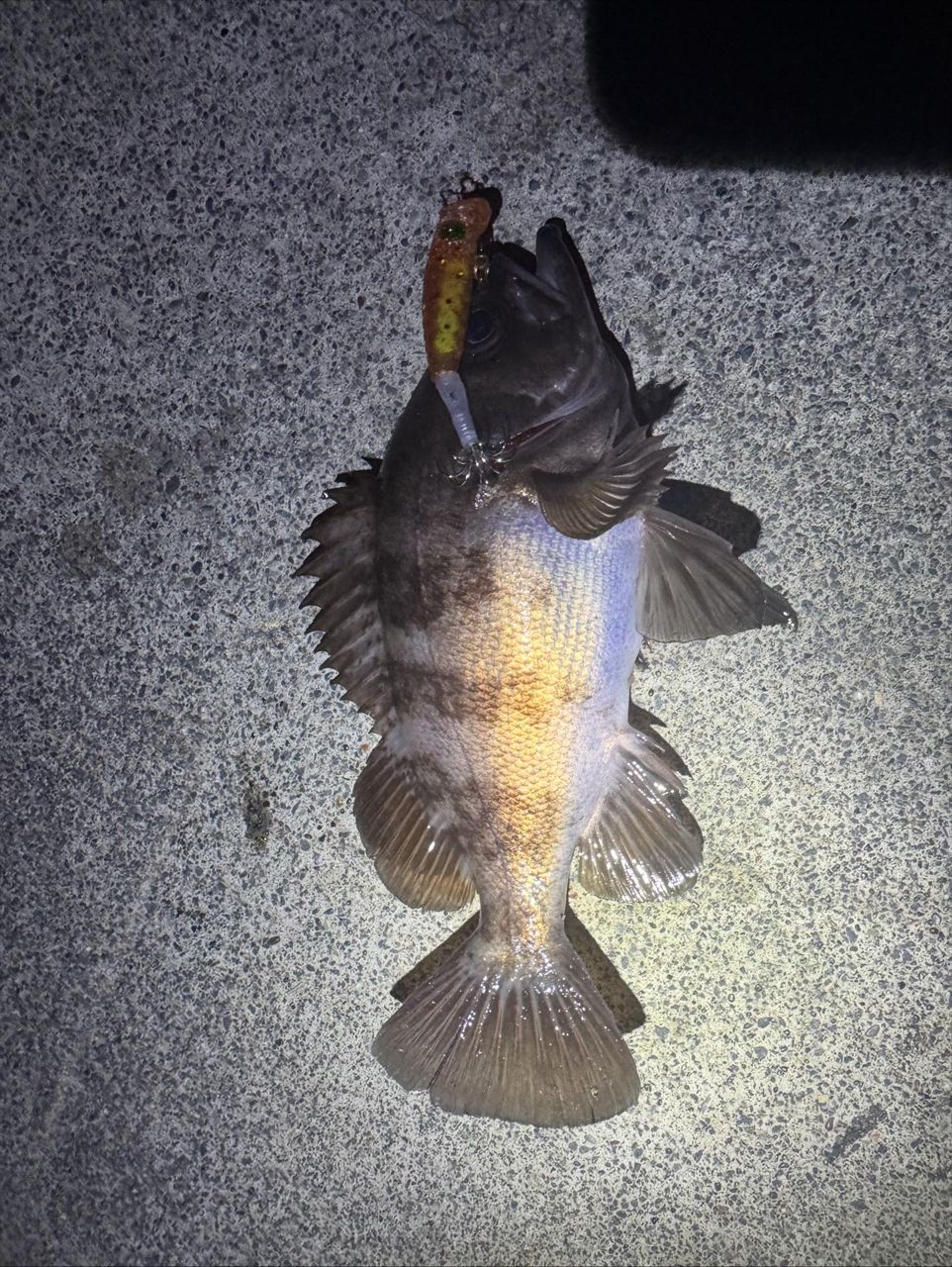 向かい風強風のためフラワー飛ばず沈まず。ナッゾジグにカンナ付けてやってました。イカはフォールで、メバル狙いは巻きで。プラグだとメバルの猛攻が。。カンナに喰われてバラシが多かったんで途中からイモムシにカンナで。しっかり掛けにいけました。
