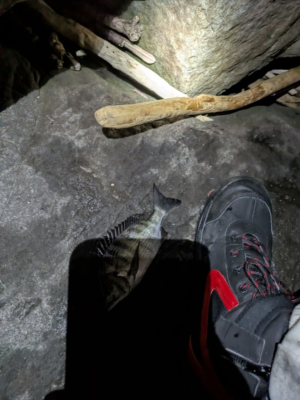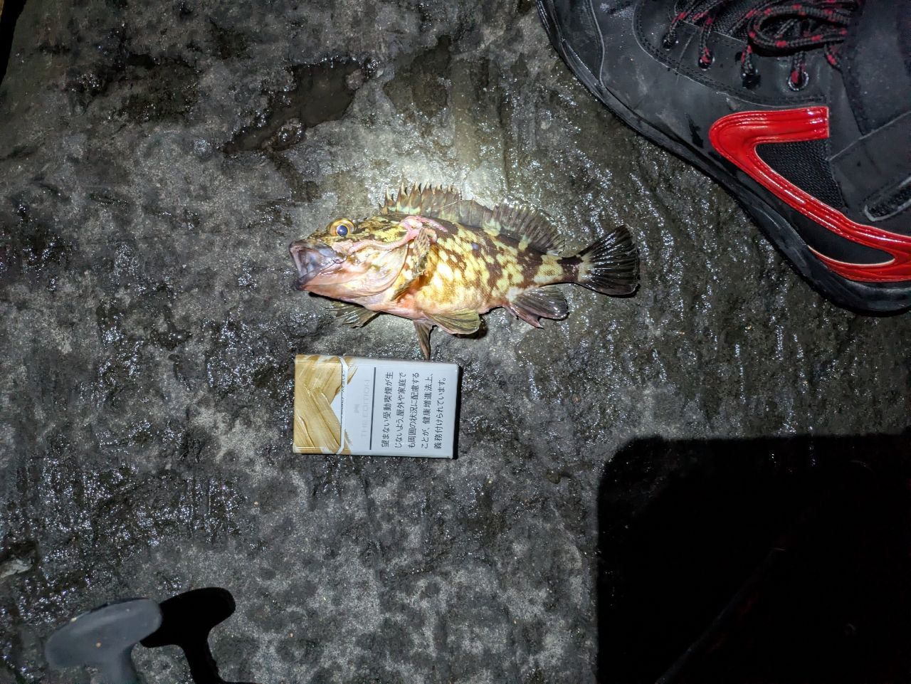 最初あたりがなく焦っていたが徐々にセイゴのあたりが出てきて次に良型のアラカブが釣れ
