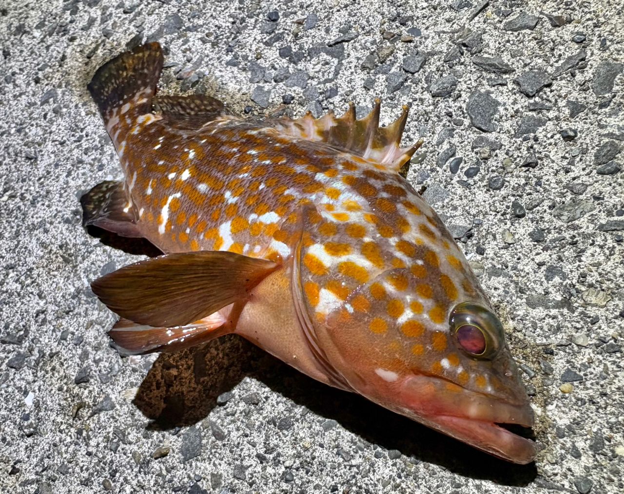カサゴを壁際チョンチョンで釣っていたら、23cm程のキジハタが釣れました(*゚▽゚*)