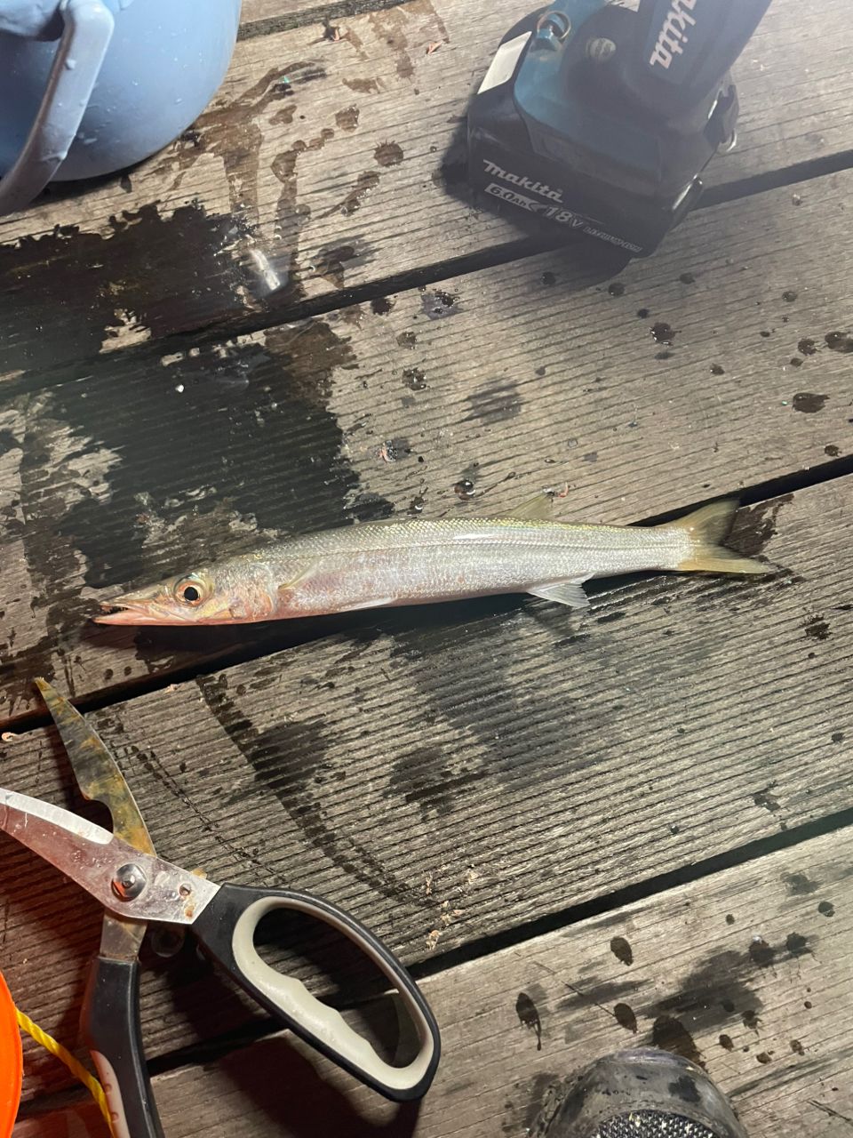カマス1匹メッキ1匹風が強くて3時間だけ頑張りました〜