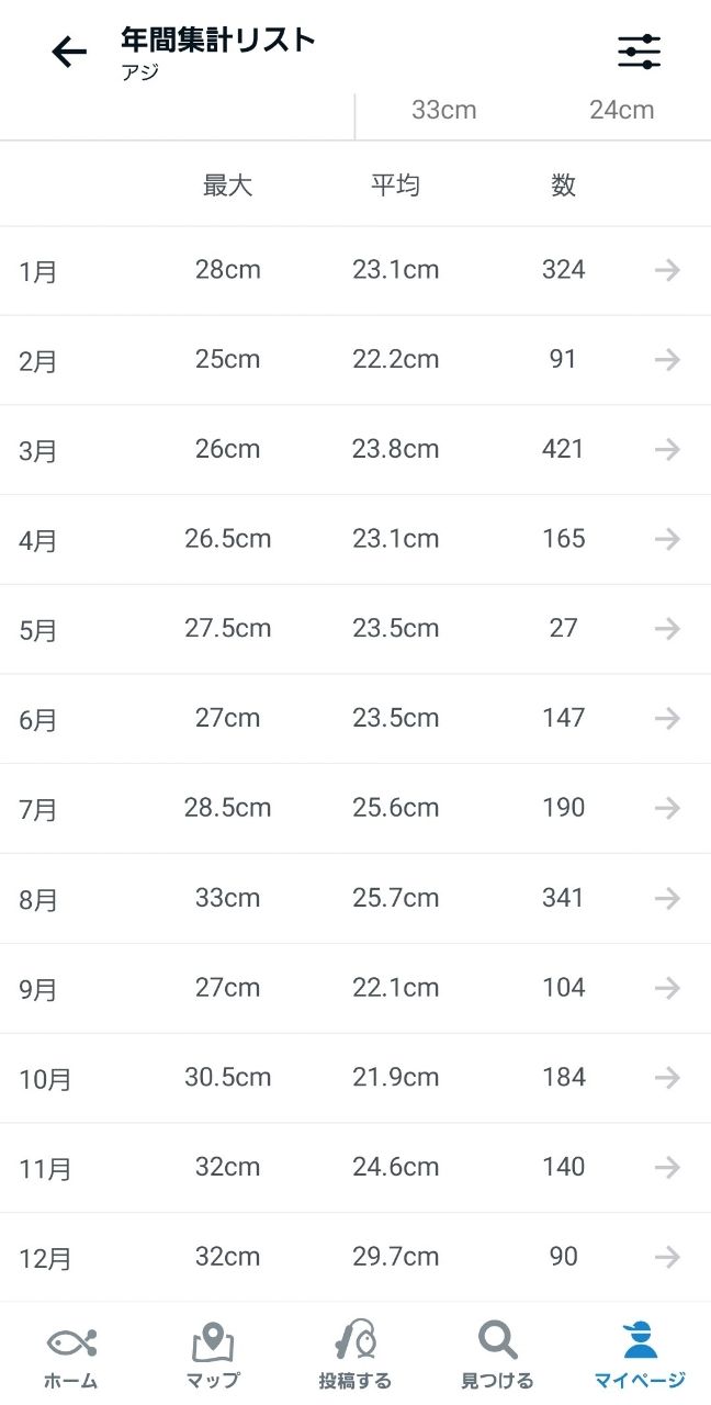アジングでアジ2,000匹に【2023年 1769匹・2024年 1449匹】、オカッパリ自己記録の35cmオーバーを釣ること☺️