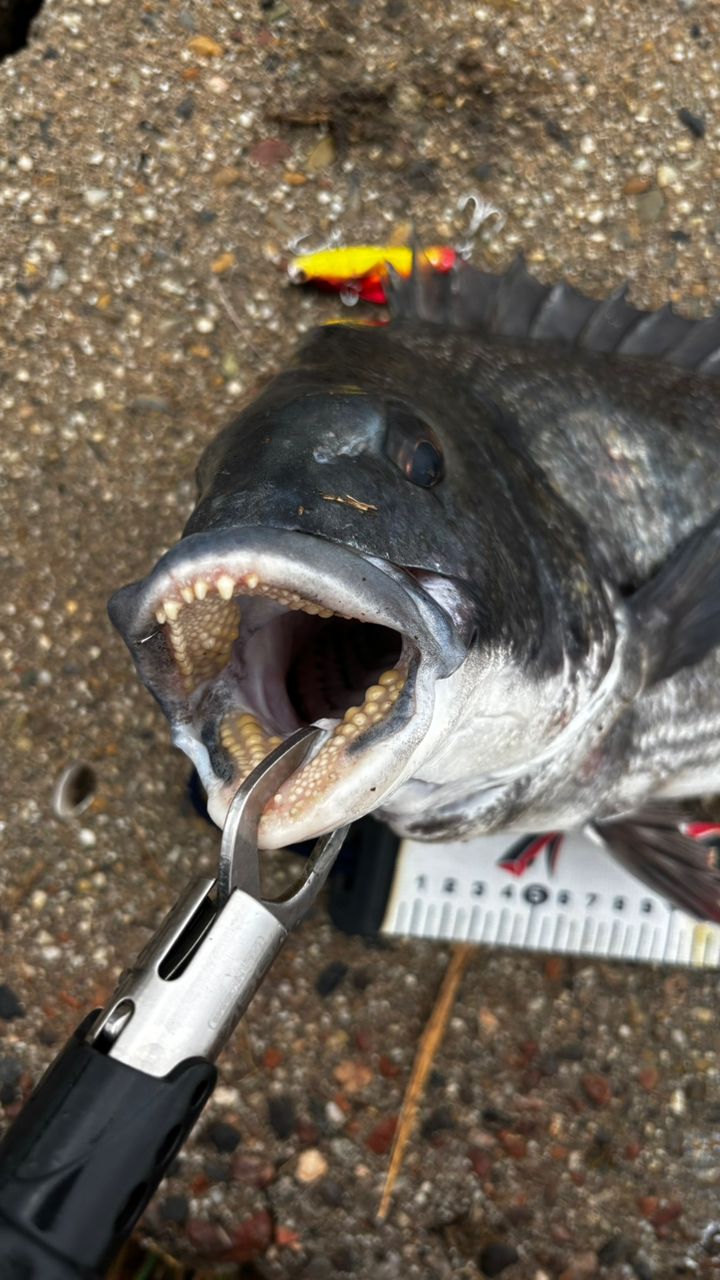 アイト:しっかりランディングして見事キャッチ:47cmのクロダイいい引きをしてくれました。
