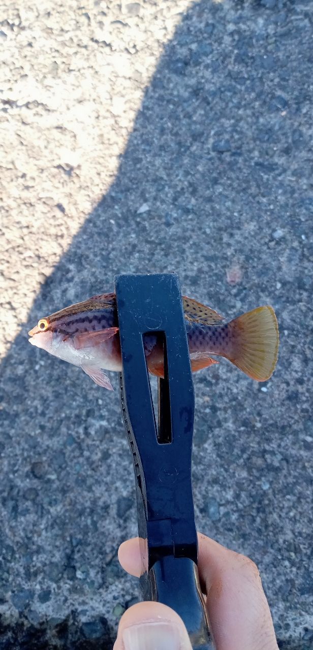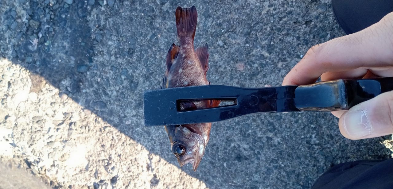 風が強かったのでエギングは断念して、オキアミングしました。小魚が五目(メジナ、カサゴ、ベラ、ネンブツダイ、スズメダイ)釣れました。