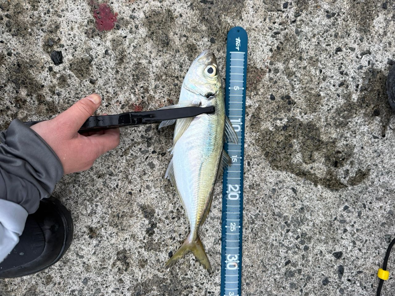 朝マズメだけきて初の尺アジもちろんぶっこ抜きました