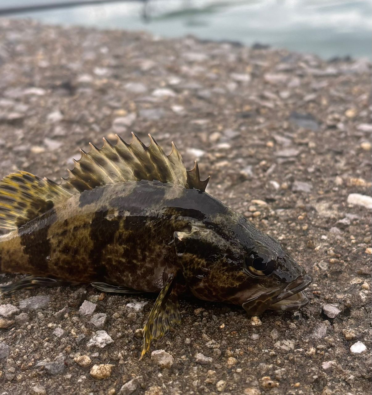 堤防際にワームを落としてみると、根魚が飛び出して来ますが..小さい魚ばかり。