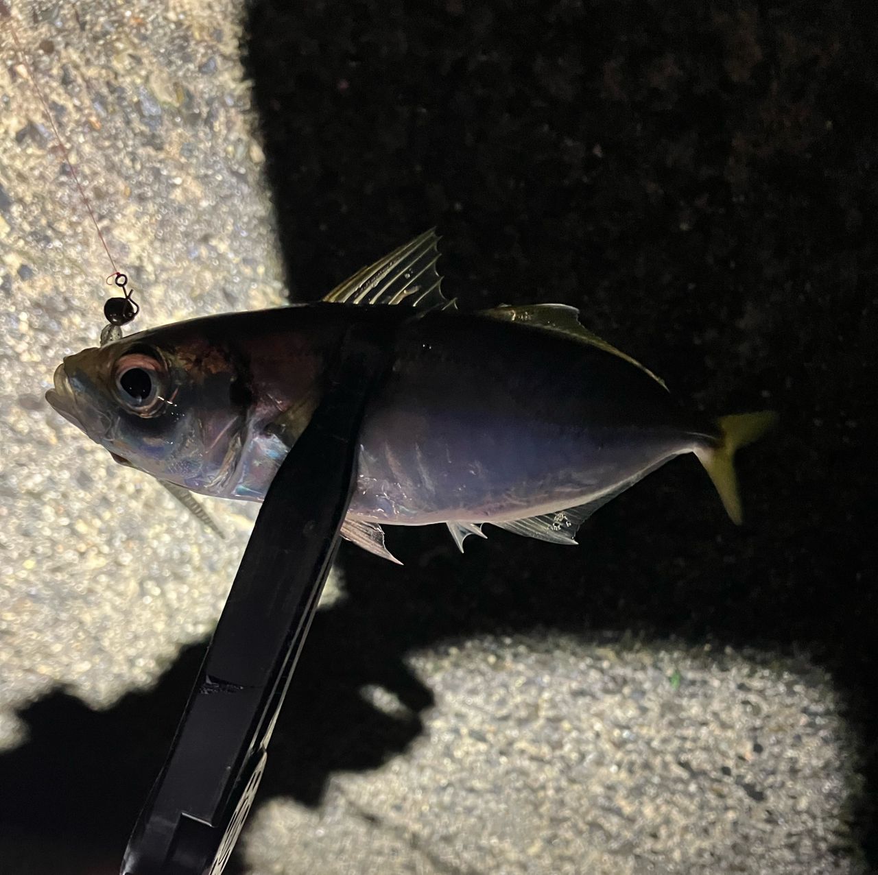 底付近で潮が効いている箇所にジグ単を置いておくイメージでジグ単に潮の重みを感じるとコツンッと当たりが‼️