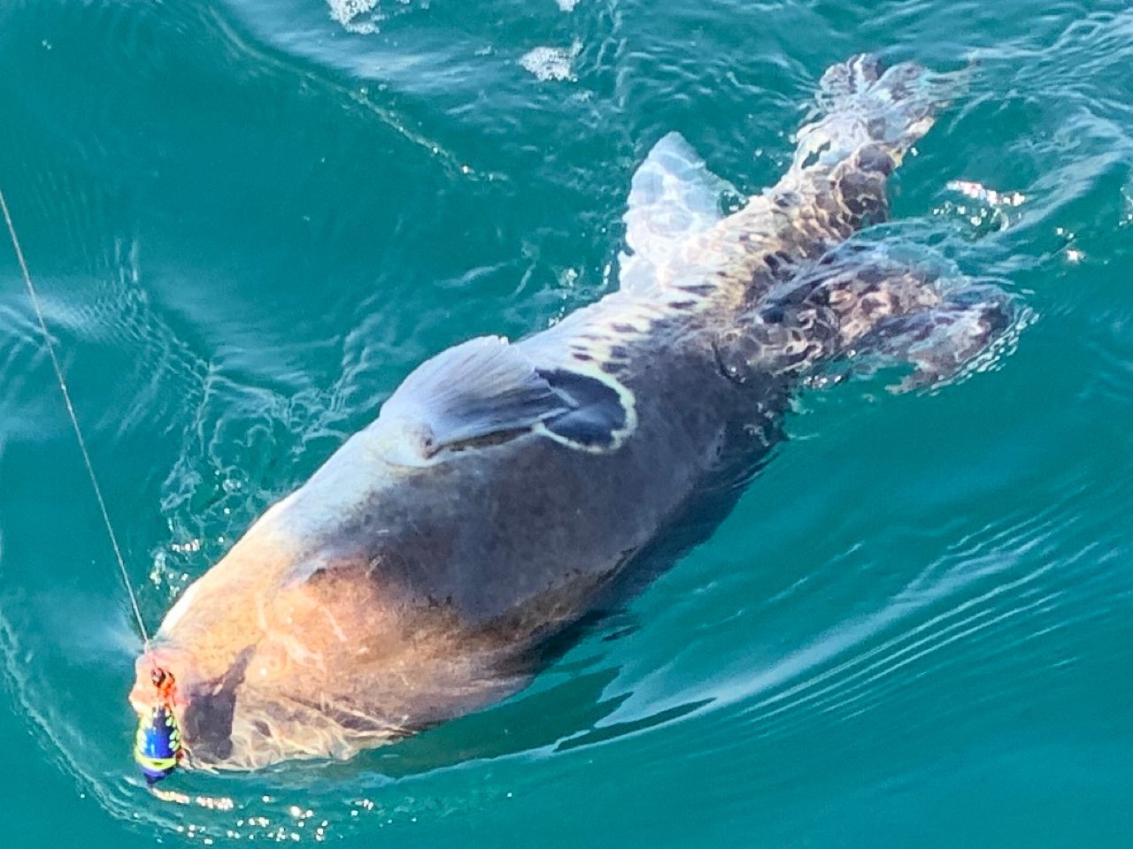 中々潮が動かず苦戦する中、ファーストヒットはまさかの大型トラフグ🐡