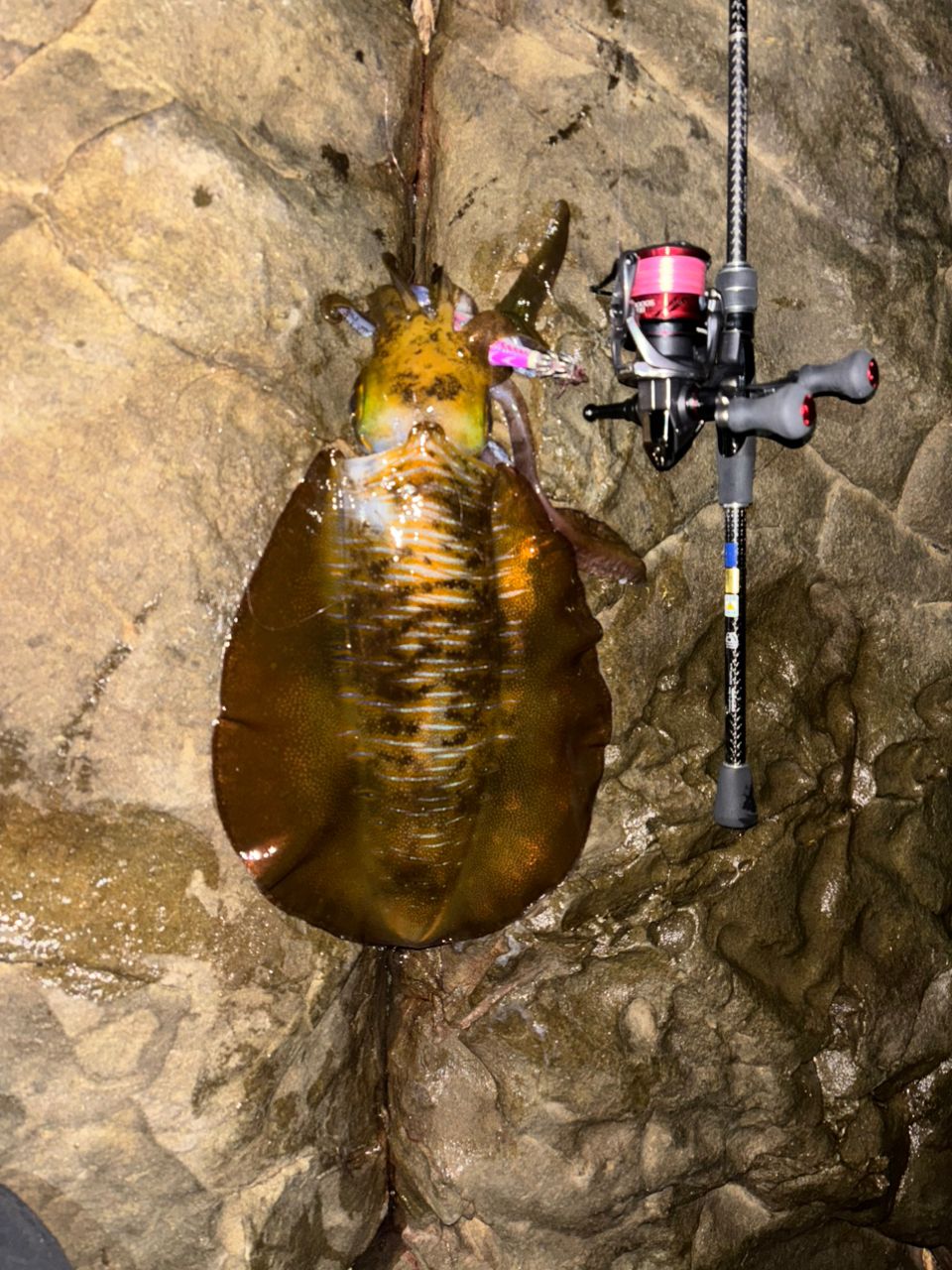 前回のキロUPを釣った時と同条件狙いで今回はキロUP2杯と新子1杯🦑