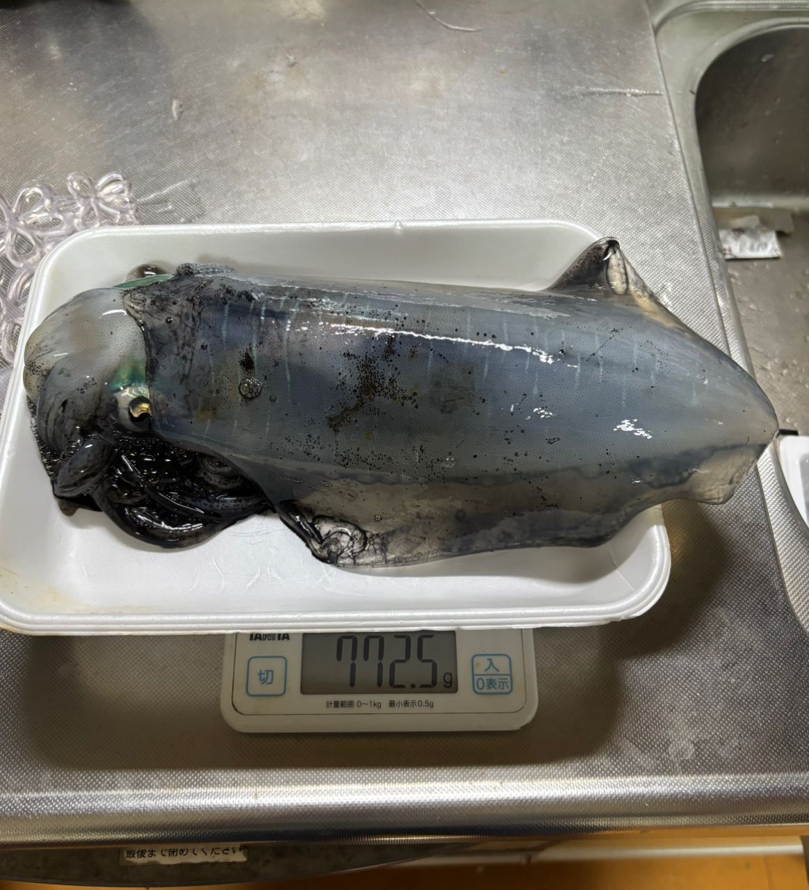夕方、エギンガーのおじいさんが登場し、すぐにアオリを2ハイ釣り上げたので、急いでエギング開始。おじいさんにコツを教わって、投げ続ける。そして根掛かったと思ったら、少しずつ動くので、もしかしてと巻き上げる。重いながら巻いているとイカの姿が。近くの人がタモをしてくれて、念願のアオリイカを釣り上げた。まあまあ大きく、重さは772gだった。今年はエギングも本格的にやっており、ようやく初のアオリイカをゲットできた。