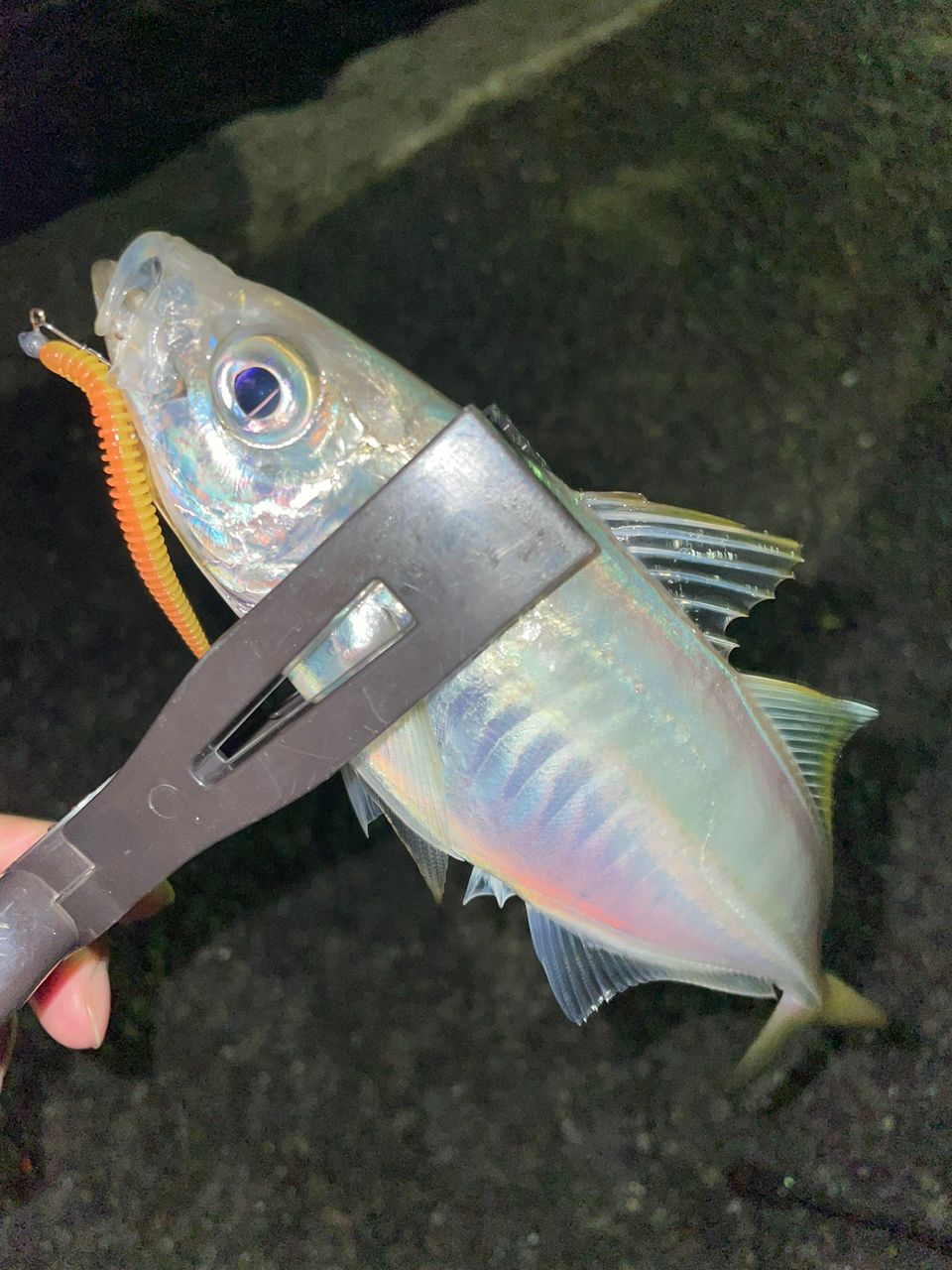 スプリットでボトムフワフワしてると肉厚でまあまあいいサイズのアジ!3匹釣れたけどあとは反応なく納竿🎣