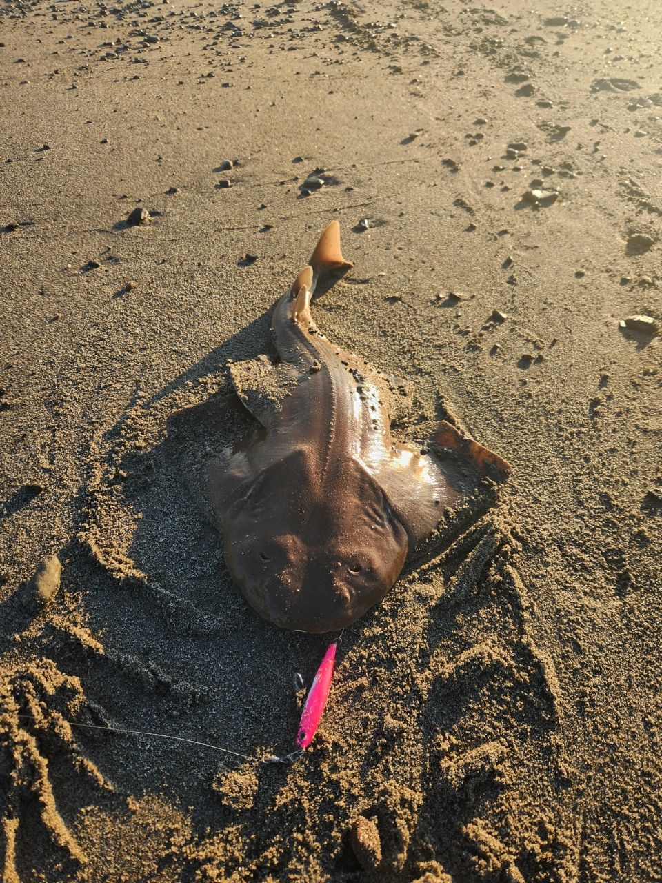 朝にカスザメ釣ったビジターの方とさっき会話してからの、カスザメ。感激するほどの重さですね!