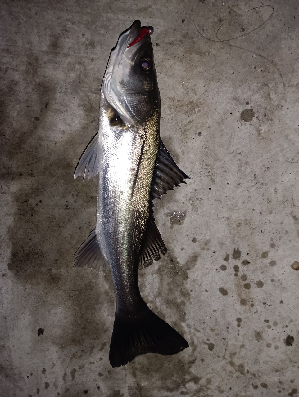 ボラの群れがバシャバシャ騒いでいたのでガルプジグヘッドを投げてみたらそこそこサイズのセイゴが追いかけていたようでした