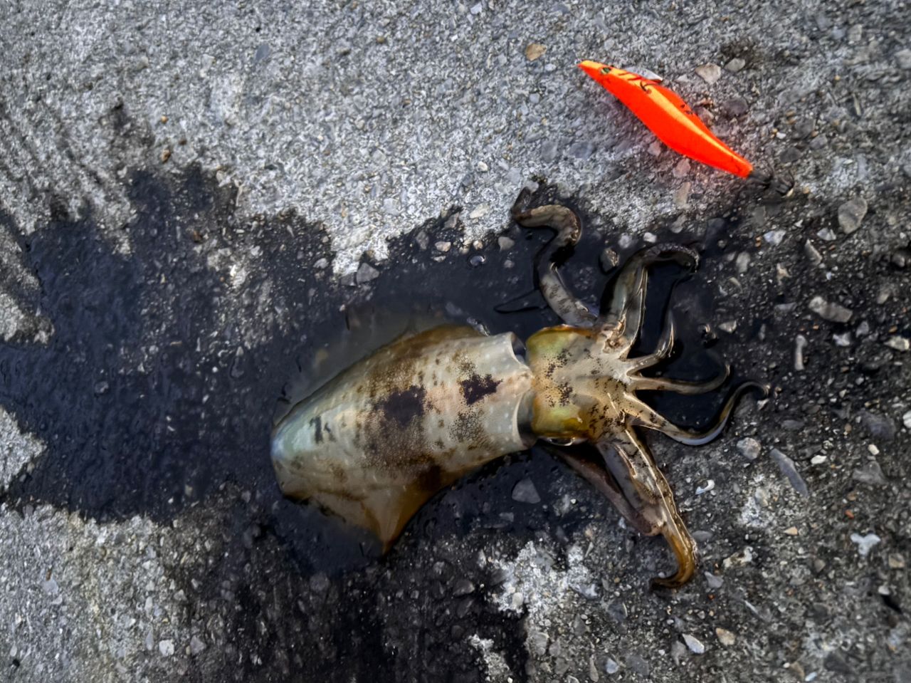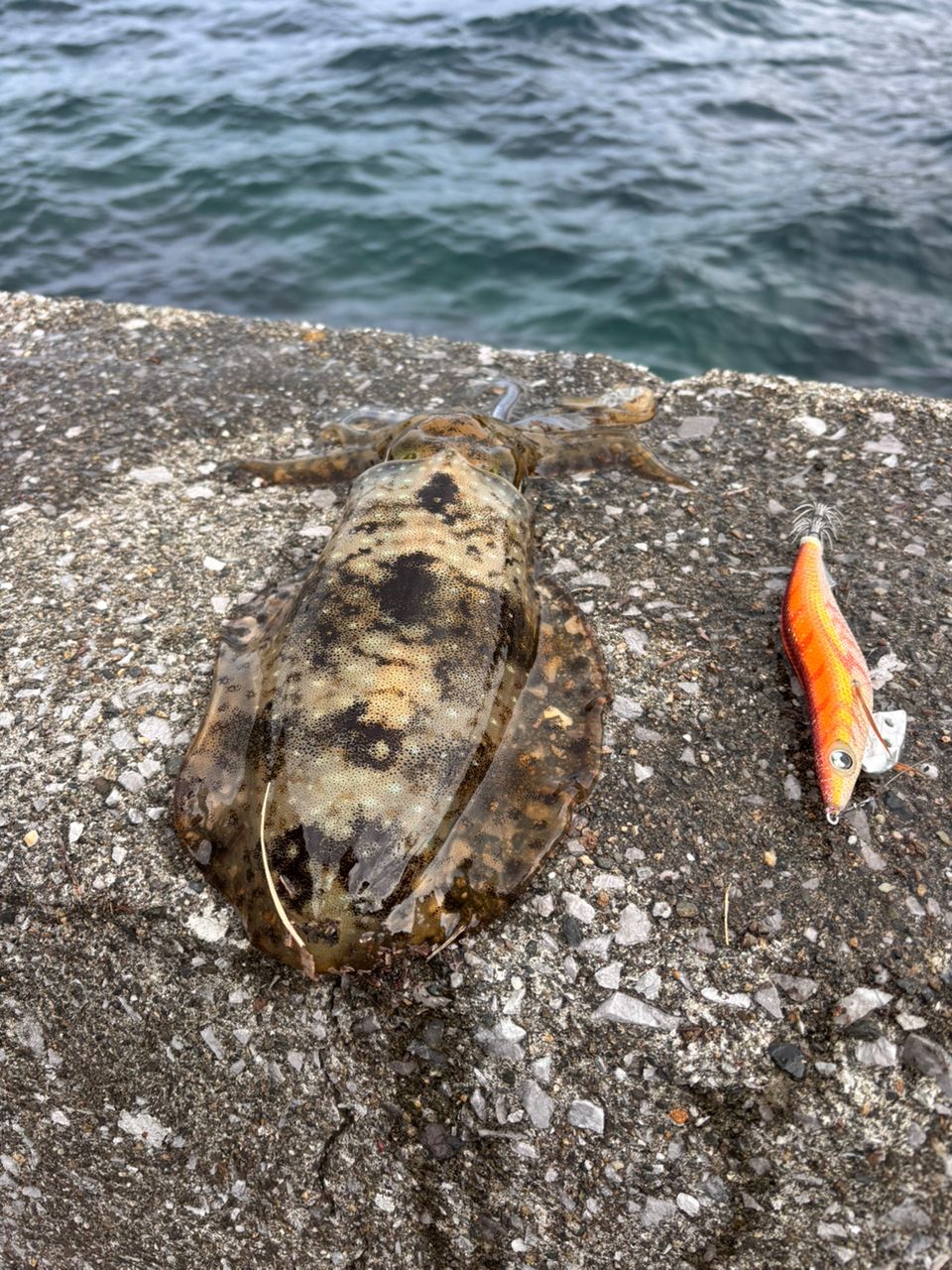 エギング初めて、釣れた。