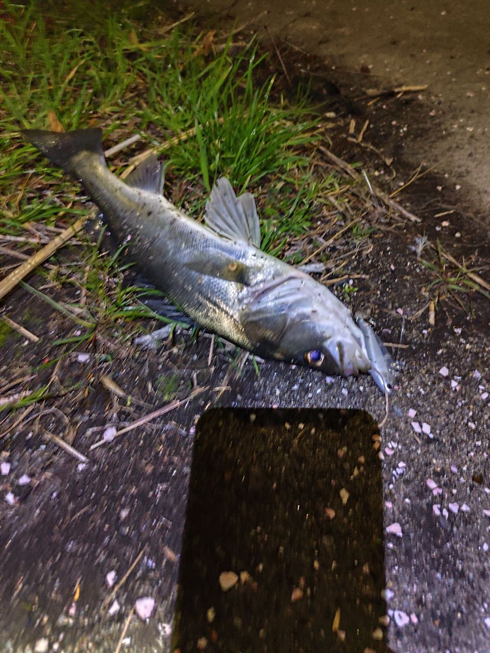 何時も通りベイトは確認出来ませんが、表層から少しレンジが入ると50cm前後のボラが必ず行き来してるんですが、このボラによくスレ掛かりするのがいつもの決まり事。今夜もこれで終了かと思っていたのですが、今年お気に入りのローリングベイトシャッドのリフト&フォールで悪あがき。何とかシーバスを掛ける事が出来、ブランジーノがボランジーノで釣り納めにならずホッとしました。