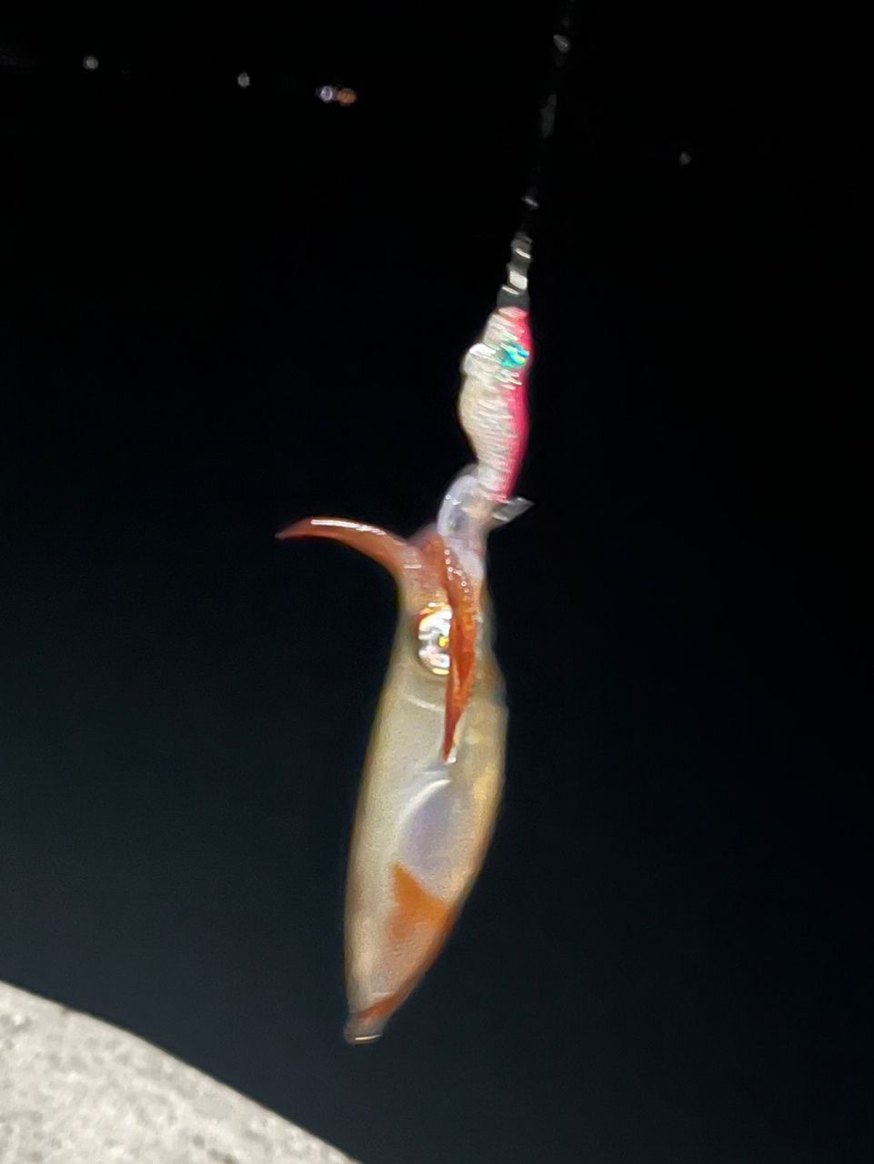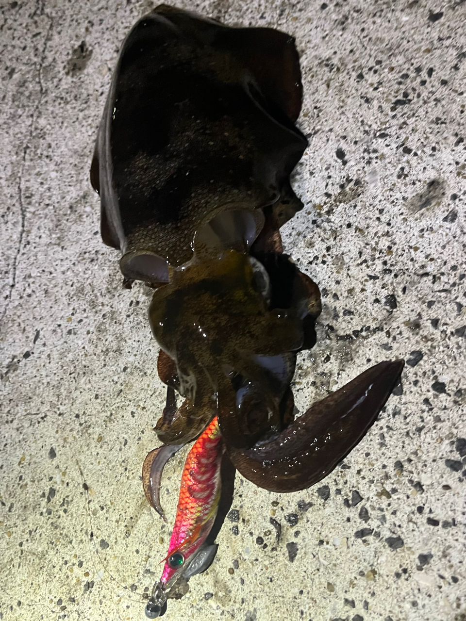 アオリイカもヒット、キャスト後フォール中やけに着底しないと思って合わせてみたらイカでした。10秒以上は抱いてたと思います。試しに味や匂いのするスプレーをかけていたから……?