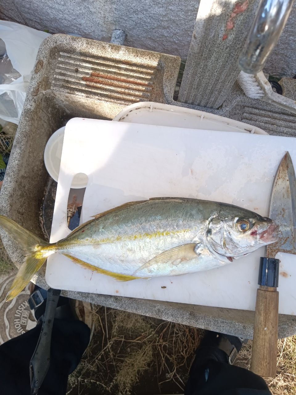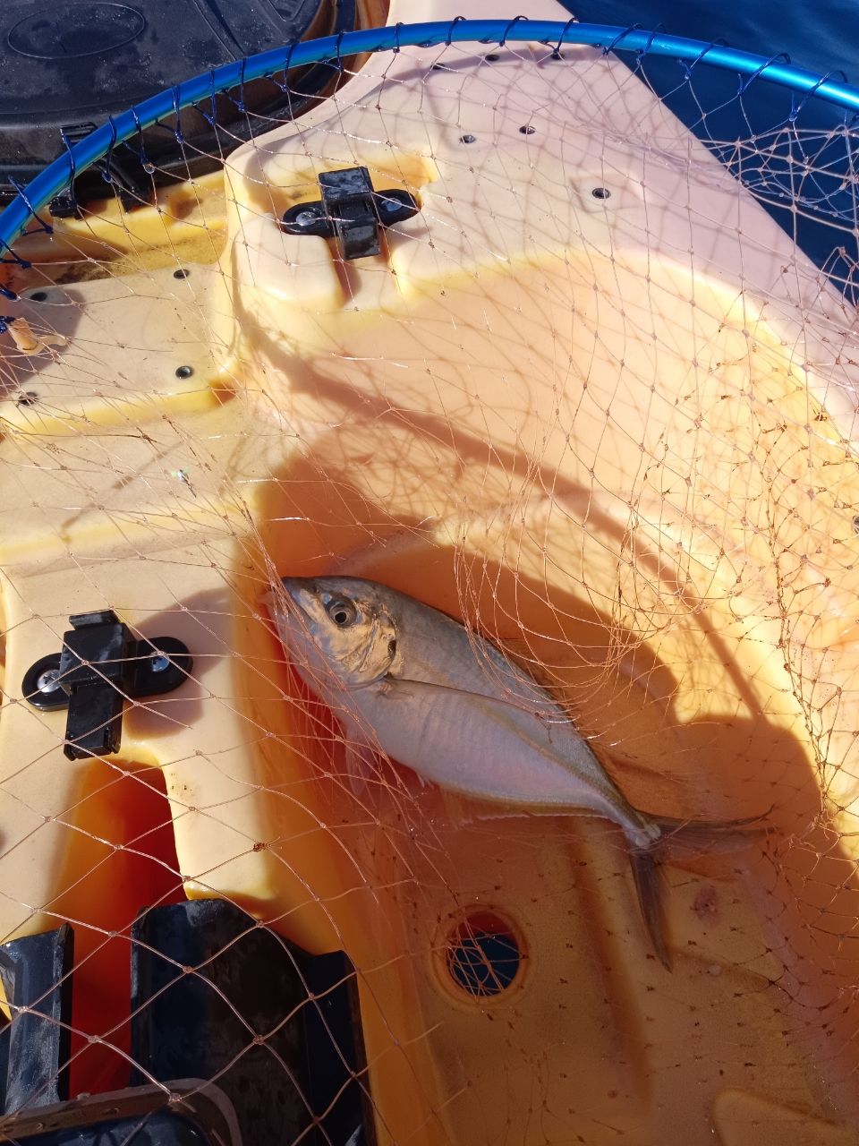 カヤックからの初魚種。シマアジ。カワハギ釣りやってたら意味不明の引きでコイツでした。