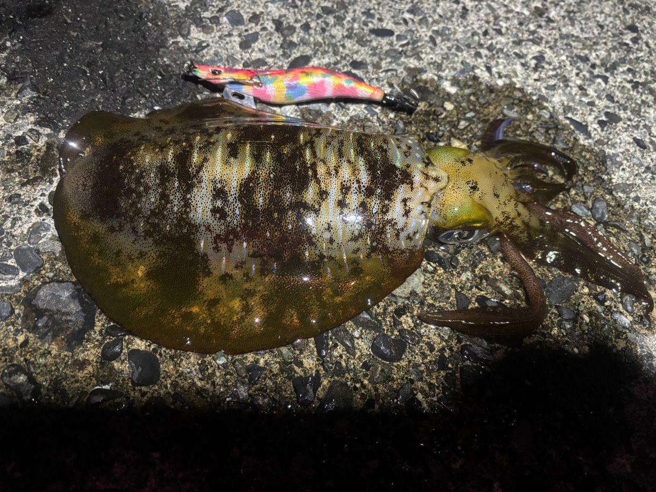 3投目くらいで大体800グラムくらいのアオリ釣れてくれて自己記録更新😂