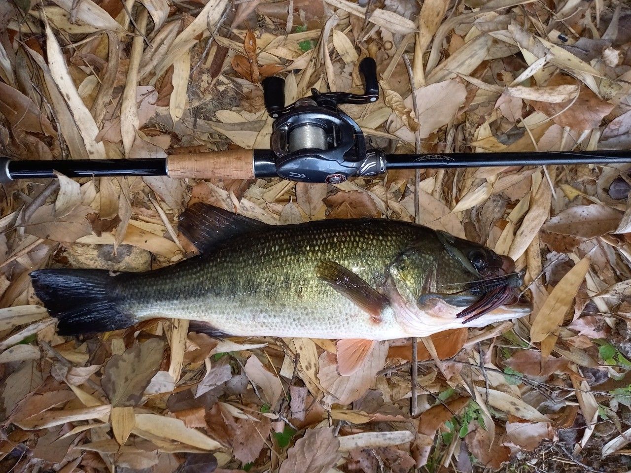 無事に釣れたぁ~ブリブリのバス😁