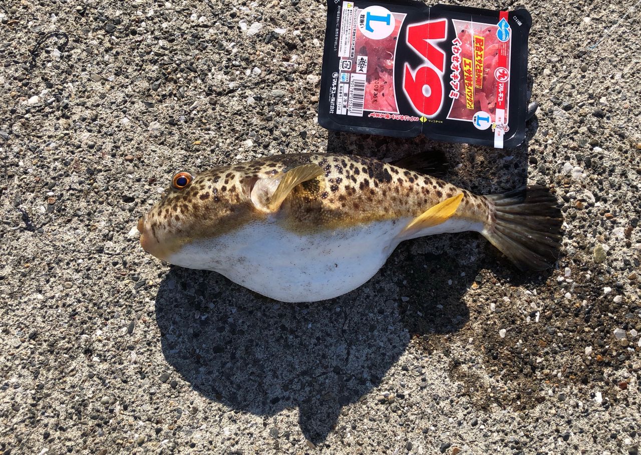 アカメもトラフグも自作の塩辛で釣れました!花暮岸壁で高級フグが釣れるとは。