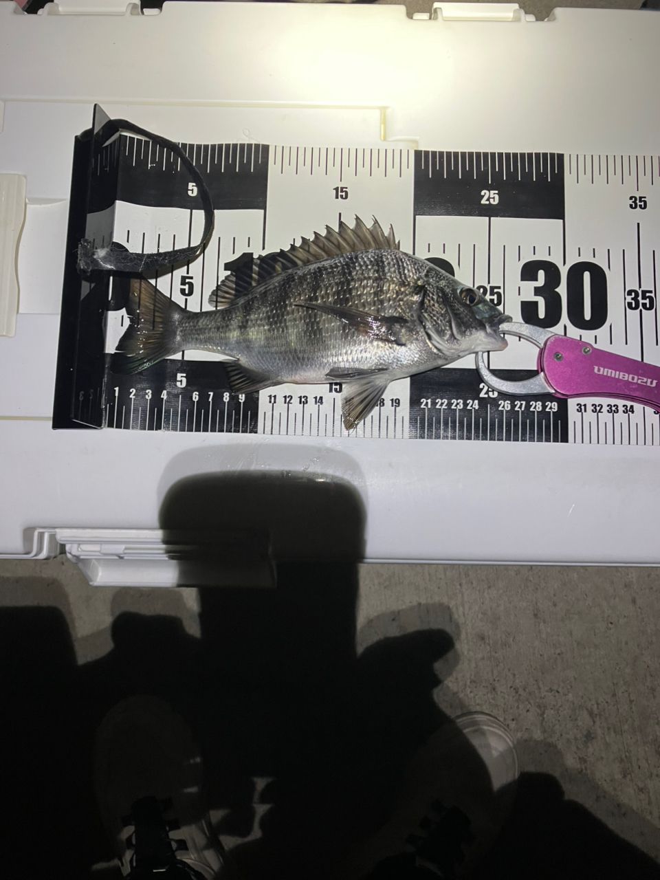 日も暮れ電気ウキにした直後からやっとあたりが始まりましたが、南風、潮流、波でなかなか厳しい状態が続きトドメは満月、久しぶりの高速潮流で棚取りが超大変でした。🐟もお腹🈵。それでもポツポツあたりがあり、いくつか上がりましたが、もうシーズンオフかレギュラーサイズのクロダイは上がりませんでした。来週上がらなければ💤に突入かもです。