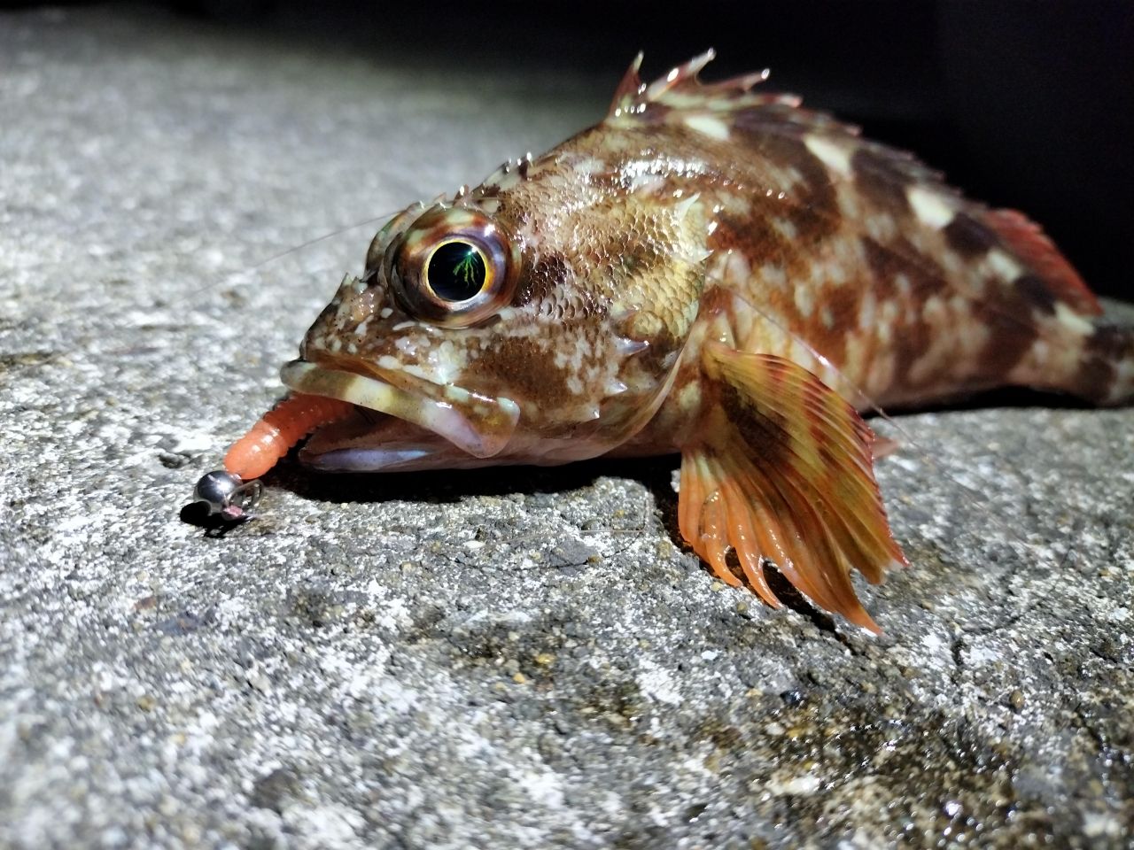 その後中層メインで狙ってるとようやくチビメバルが釣れ、それからしばらくしてまたヒット!