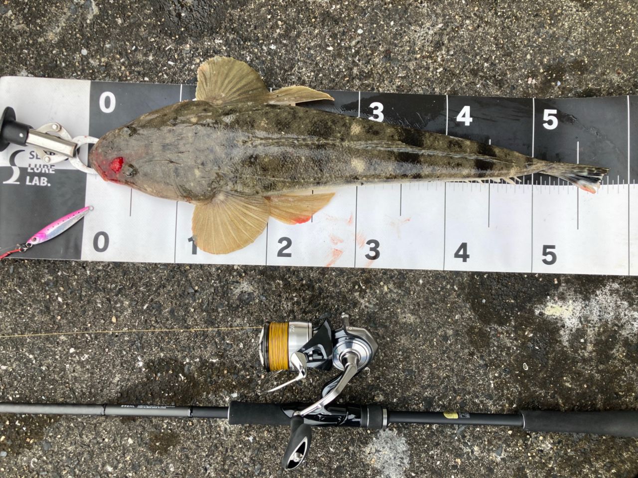 潮が走り出したタイミングでボトム付近のスローな誘いで良型のマゴチ!