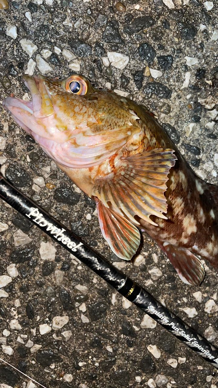 風が強くなり3gでボトムを探ってるといい引き!これは良型のメバルだろと思ったら泣き尺のカサゴ😭