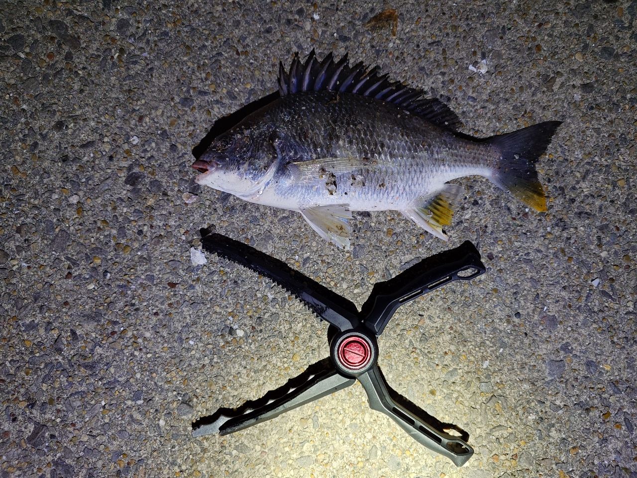 風と寒さでコンディションは良くありませんでしたが、何とか初チヌ釣れました〜😄
