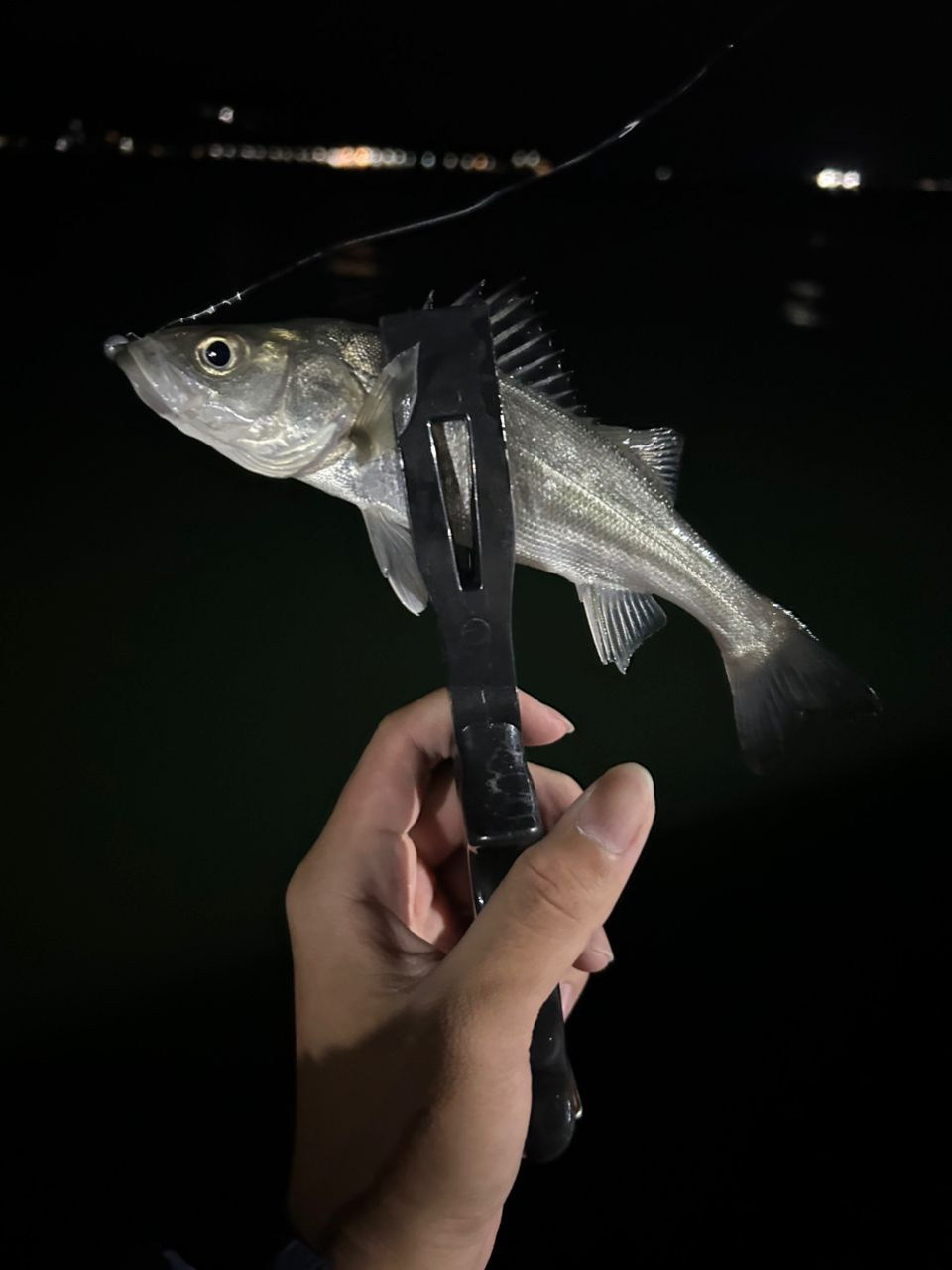 友達は30センチくらいのヒラスズキを釣っていました。