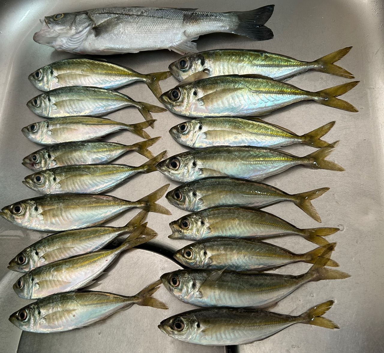 極小アジ選手権が勝手に開催されていて、豆アジばかりで笑ってしまいました🤗