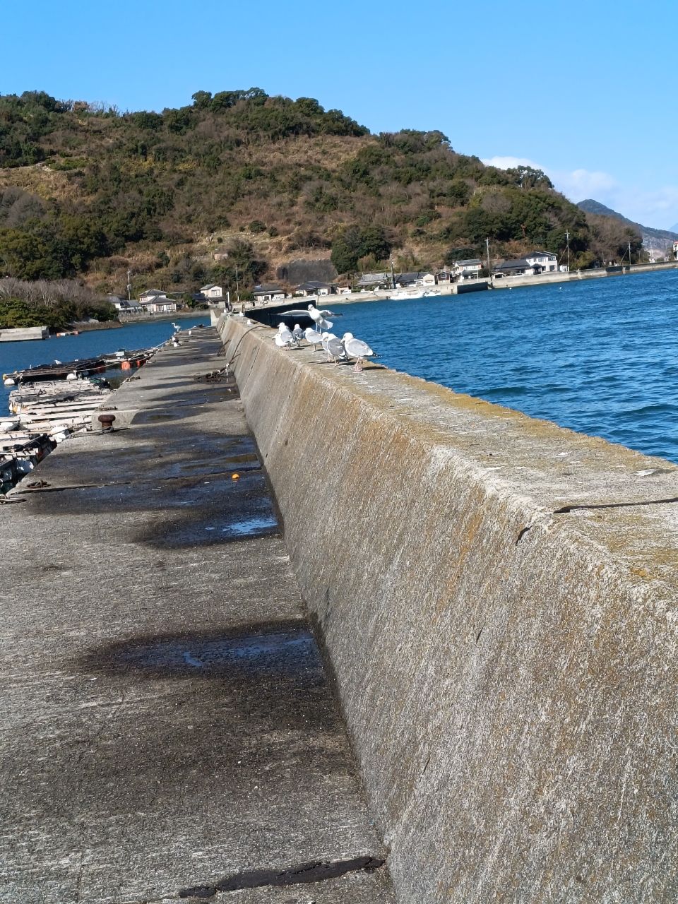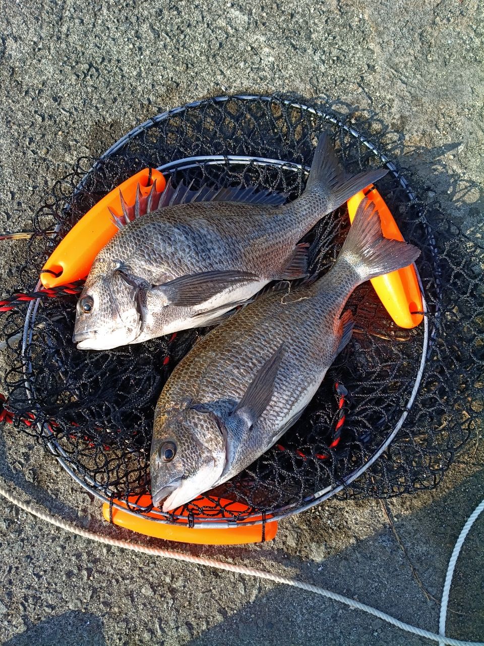 天気予報は晴て暖かい…但し、強い西風🤔と言う事で東向きの釣り場と考え、初維和島の蔵々漁港へ😀人気のポイントだし、今日釣りに行く様な強者が流れて来てるだろーなぁと昼前に港へ着くと、堤防に並んだ沢山の釣人…ではなくカモメ🐣ん!!誰も居ないって釣れてない!?と心配ながらも釣り開始。棚を測ると足元から竿2本先が10m位でその先は更に6m位落ちててめちゃくちゃ深!!おまけに潮が速い😭西港と樋合新港の難しいトコをチャンプルーしたような状況。仕掛を1号の半誘導沈め探りから2号のドスンへ即変更!!駆け下がりの底を狙っていきました。ずっと潮下で撒き餌が効いているハズなので一流し40〜50m位🤔アタリは以外と小さく、ウキがじわーっと入って行く程度でした。体高があって太った良い〜コンデションのチヌ達でした✨