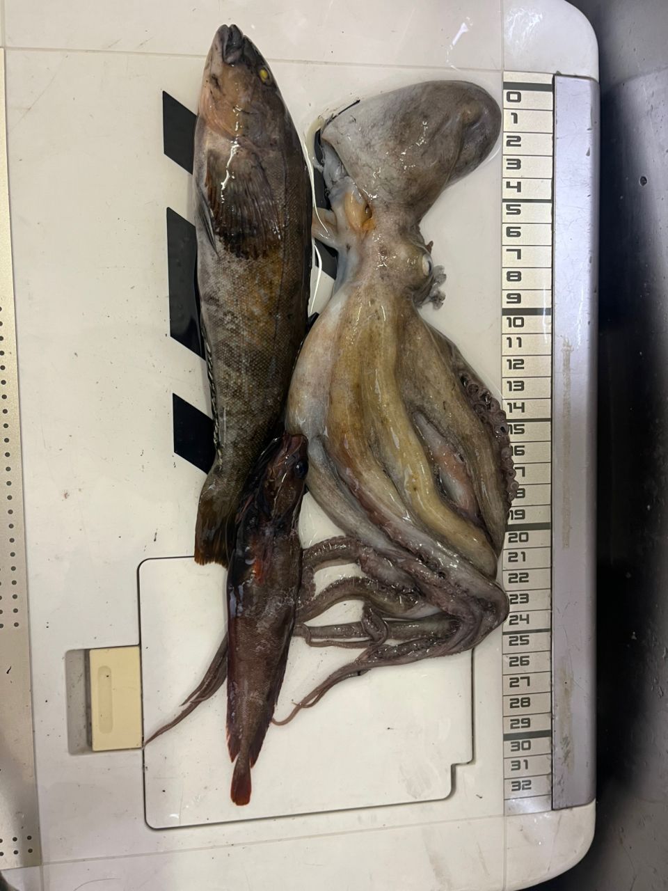 アジ尺超え、2枚目写真のサバも尺超え☺️、3枚目はタコ🐙クジメ、ドンコ🎣