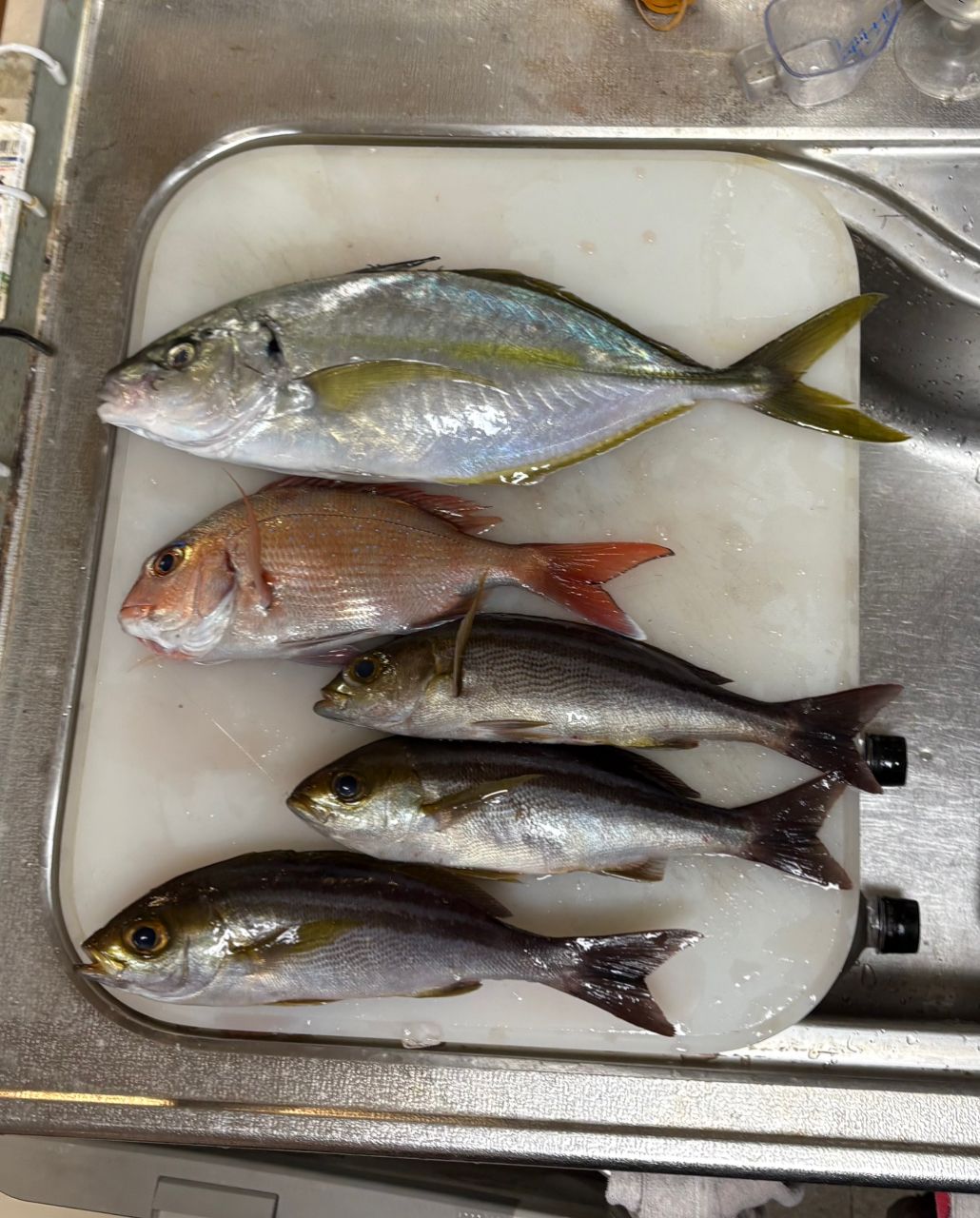 五目釣りは少なめ。真鯛1 大サバ3 イサキ3でした。6mの仕掛けでは鯖の勢いを手繰り寄せるのは難しく、ばらしも多かったです。