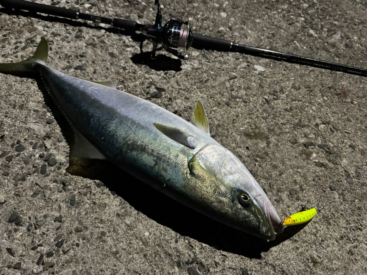 爆風の中の夜ブリ(ヤズ)