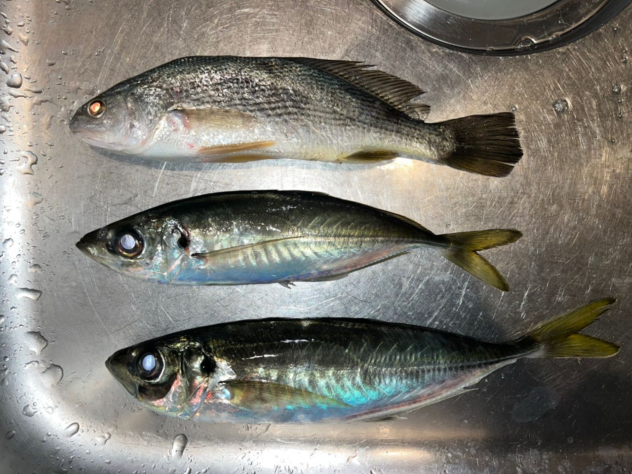 夕まずめでアジ2匹とイシモチ。