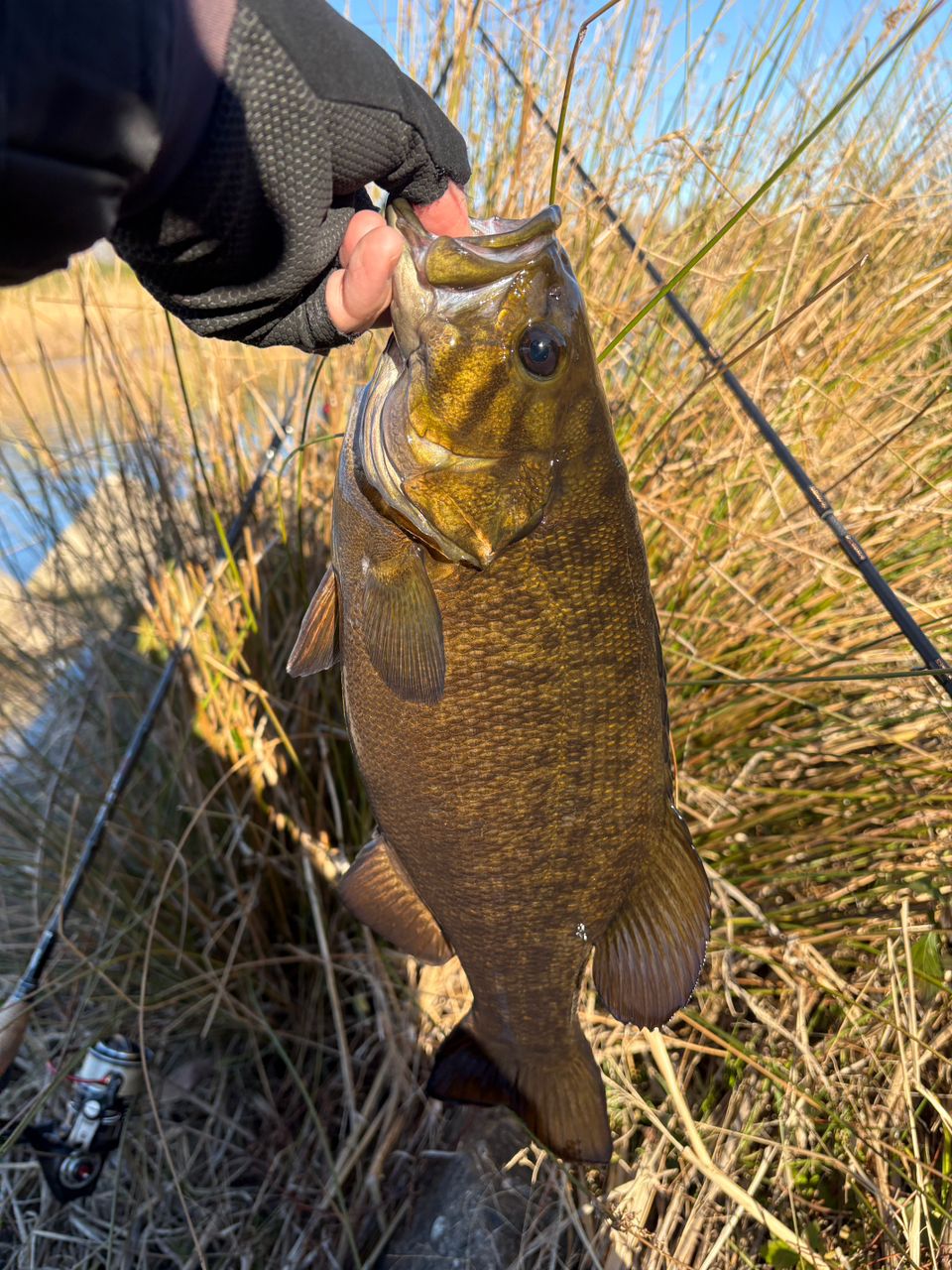 ズル引きしてましたが釣れなかったので、緩い流れにシャッドを入れたらガツンと来ました。