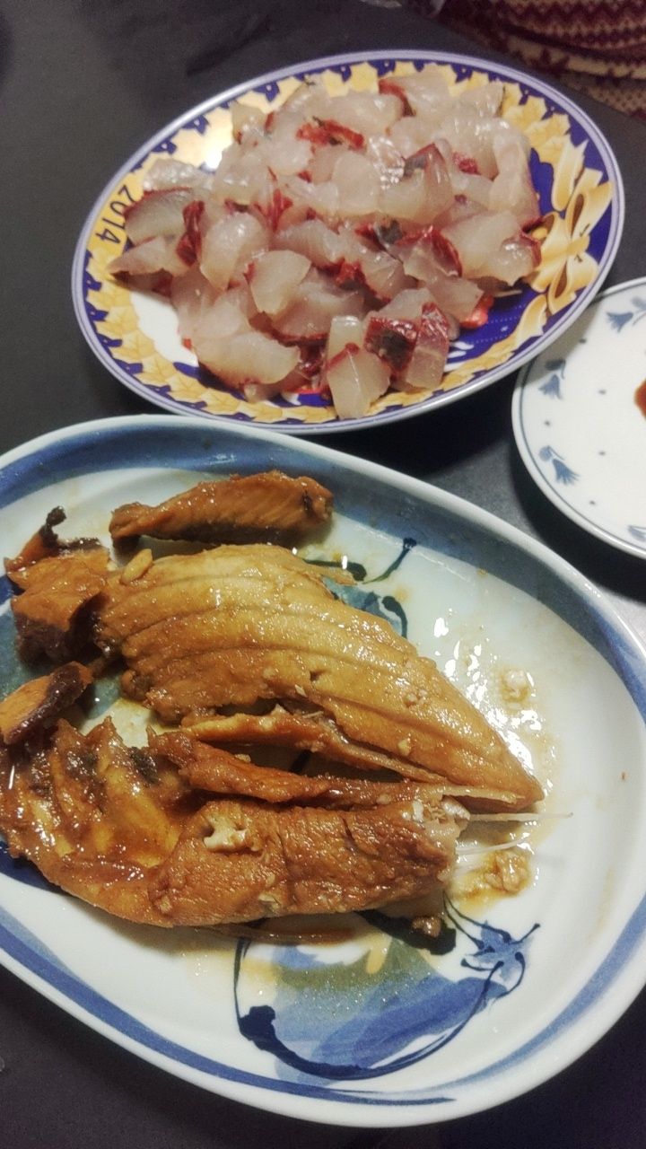 とボラの刺身堪能してます
