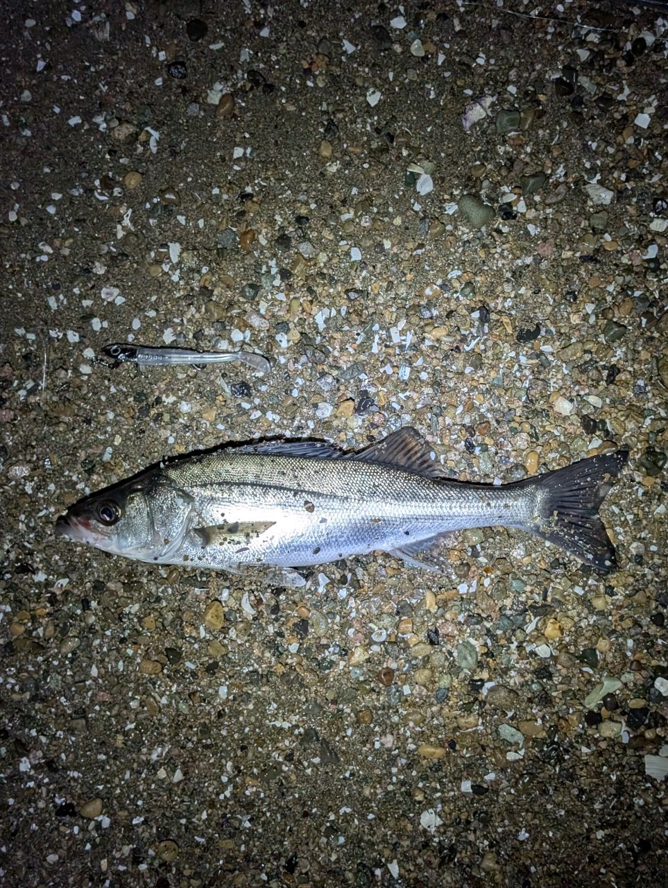 ダイソーのジグヘッドにコアマンアルカリシャッドを装着。ボトム緩巻きでヒット👍️途中雷ひどくなり撤収。。。