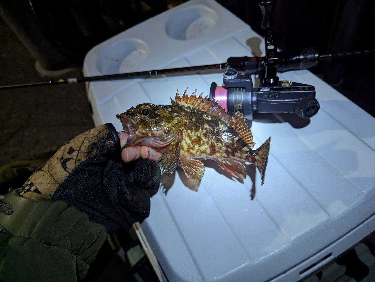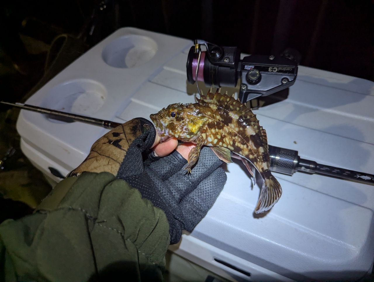 今日はカサゴが爆釣の日だった。いいサイズは4匹ぐらいでミニボーイズは5匹ぐらい。