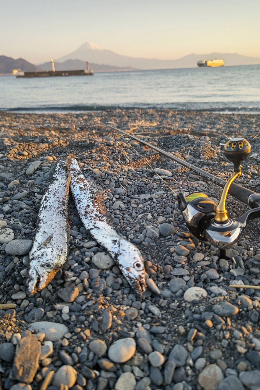 しかし、ベイトがちらほらフックに掛かったり浜に上がったりし始め、何とかF3を2匹釣り上げました