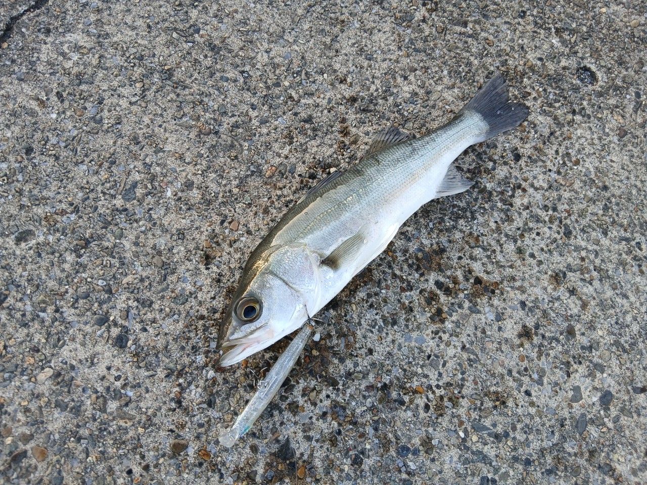 昨日に続き日が傾く前はバイトが少ないがまあまあなセイゴが釣れる。
