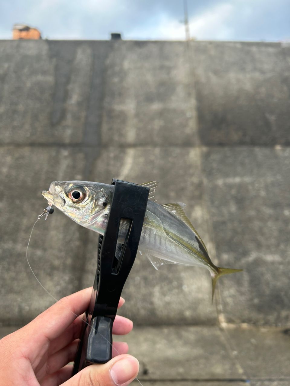 堤防の端のなんとか空いてる場所で6時から8時までジグとミノーをひたすら投げたけど青物は釣れませんでした。