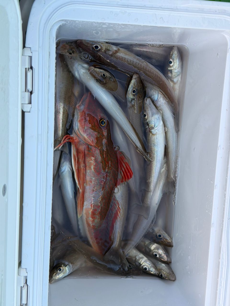 コンスタントに釣り続き、とても楽しかったです。途中サメ、ホウボウ、カサゴ、ショウサイフグなども釣れました。五目釣りまで出来ました!