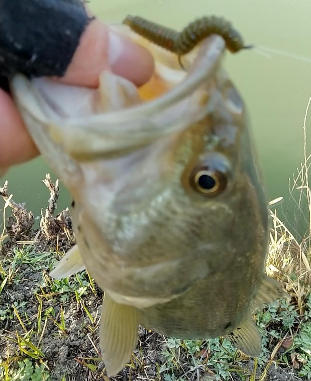 奥側のブレイクが効いてるピンポイント、フォールからのロングポーズで鈍いバイトで喰って来たのは、サンマルアップの目も金色、白っぽい魚体の如何にも冬バスらしいウィンター野池バスくんでした♪🐟️🍂☃