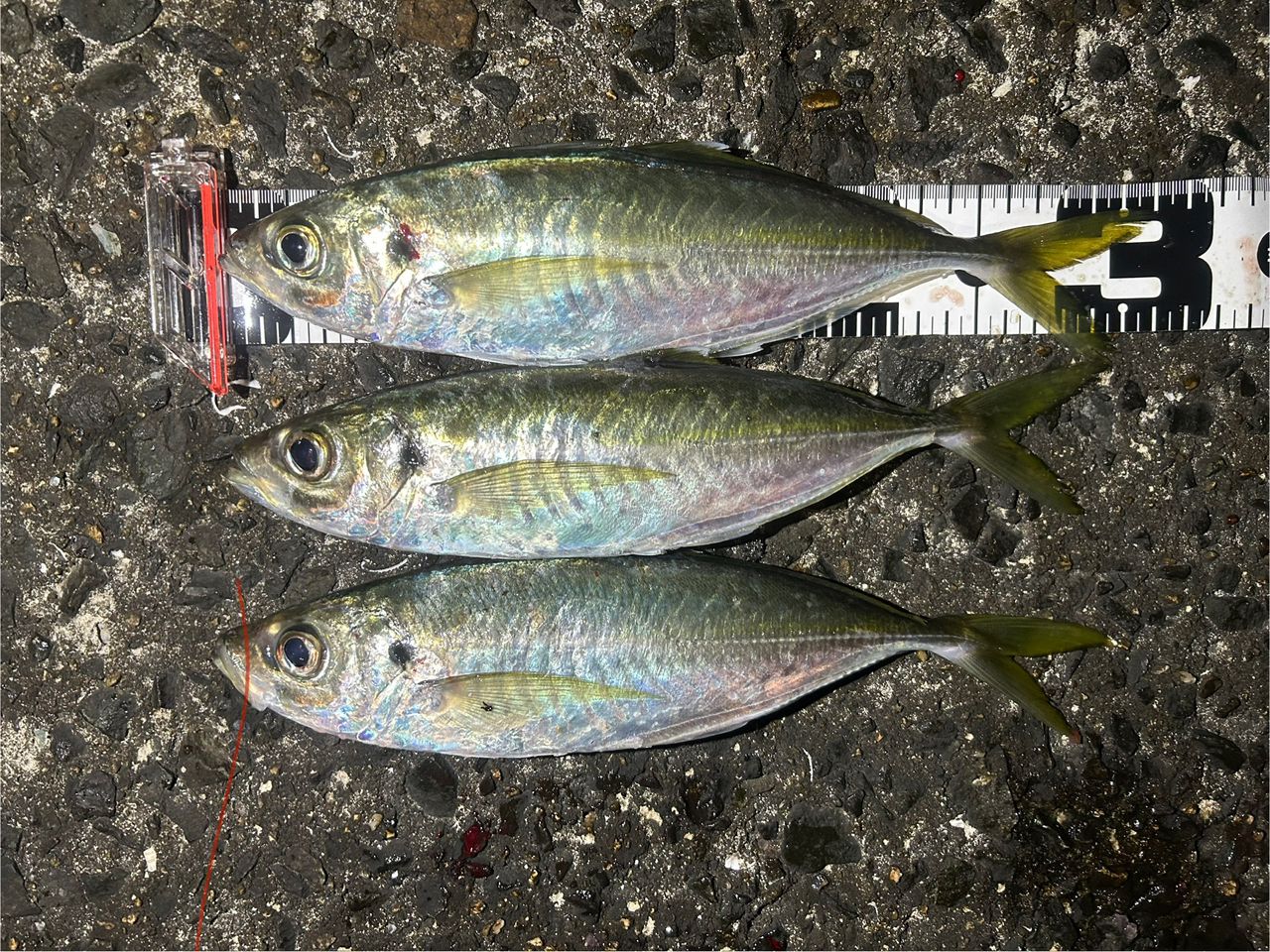 今日は昼過ぎからアジング!暗くなって尺アジを3匹釣ることができました!