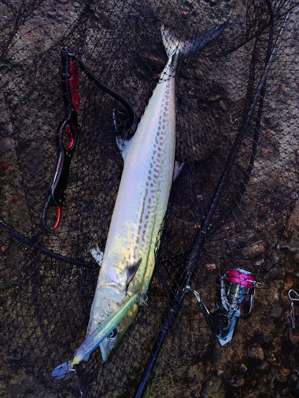 その間に再びダイブアサシンを投入。シーバスと同じくいつもより一枚下を攻めた同じ方法で、今度は重量感のあるサゴシがヒット。